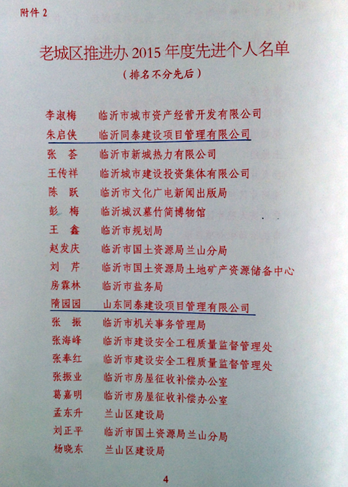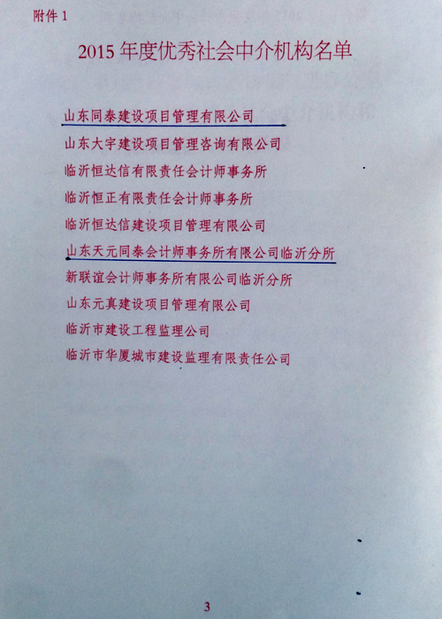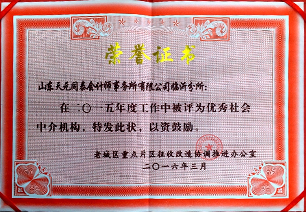 祝賀“同泰”獲臨沂市老城區(qū)推進(jìn)辦“2015年度優(yōu)秀中介機(jī)構(gòu)”! |