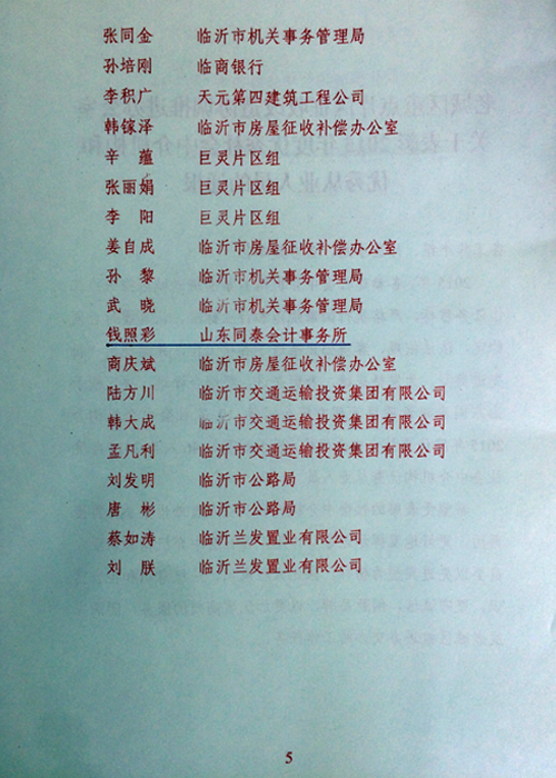 2015年,在臨沂市老城區(qū)重點(diǎn)片區(qū)征收改造協(xié)調(diào)推進(jìn)辦公室領(lǐng)導(dǎo)下,我所選派業(yè)務(wù)骨干參與老城區(qū)征收改造和開發(fā)建設(shè)工作,發(fā)揚(yáng)謙虛謹(jǐn)慎、愛崗敬業(yè)、干事創(chuàng)業(yè)、無私奉獻(xiàn)精神,圓滿完成了臨沂市老城區(qū)重點(diǎn)片區(qū)征收改造協(xié)調(diào)推進(jìn)辦公室領(lǐng)導(dǎo)交辦的跟蹤審計、工程咨詢、評估等工作任務(wù),展示出“同泰”人的水平和實(shí)力,為事務(wù)所創(chuàng)造經(jīng)濟(jì)效益。