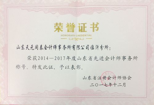 日前,山東省注冊(cè)會(huì)計(jì)師協(xié)會(huì)、山東省資產(chǎn)評(píng)估協(xié)會(huì)舉辦2014-2017年度山東省注冊(cè)會(huì)計(jì)師、資產(chǎn)評(píng)估行業(yè)先進(jìn)典型評(píng)選。 我所獲得“2014-2017年度山東省先進(jìn)會(huì)計(jì)師事務(wù)所”榮譽(yù)稱號(hào),山東同泰資產(chǎn)評(píng)估有限公司獲得“2014-2017山東省先進(jìn)資產(chǎn)評(píng)估機(jī)構(gòu)”榮譽(yù)稱號(hào)。同時(shí),李培堂獲得“2014-2017年度山東省優(yōu)秀注冊(cè)會(huì)計(jì)師”稱號(hào),杜征宇獲得“2014-2017年度山東省優(yōu)秀資產(chǎn)評(píng)估師”稱號(hào)。