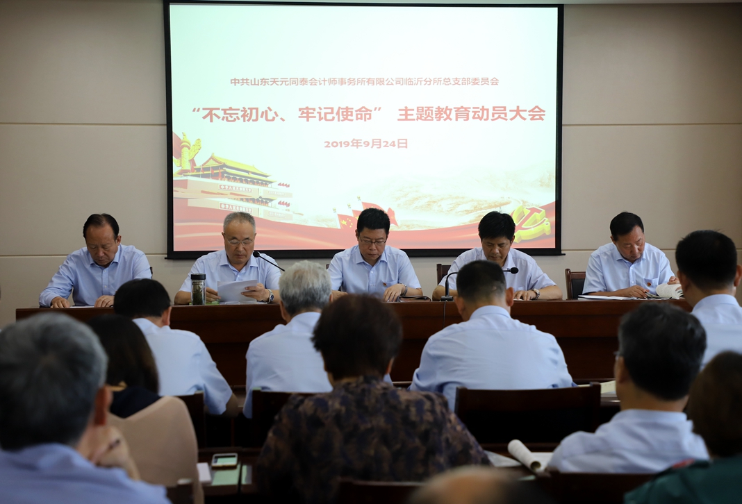 日前,中共山東天元同泰會(huì)計(jì)師事務(wù)所黨總支召開動(dòng)員大會(huì),在全所范圍內(nèi)全面啟動(dòng)“不忘初心、牢記使命”主題教育活動(dòng)。會(huì)上傳達(dá)學(xué)習(xí)了注冊(cè)會(huì)計(jì)師行業(yè)黨委和市行業(yè)黨委的有關(guān)文件,公布了事務(wù)所 “不忘初心、牢記使命”主題教育活動(dòng)實(shí)施方案,總支書記裴波苓作了主題教育工作部署,對(duì)開展各項(xiàng)活動(dòng)進(jìn)行了安排。同時(shí),組織全體黨員進(jìn)行第一次集中學(xué)習(xí)。 9月12日,事務(wù)所黨總支、審計(jì)評(píng)估支部和項(xiàng)目管理支部支部書記與黨務(wù)工作者參加了省注協(xié)行業(yè)黨委召開的主題教育動(dòng)員部署視頻會(huì)議。在省注協(xié)行業(yè)黨委下發(fā)主題教育實(shí)施方案后,事務(wù)所黨總支立即召開了總支擴(kuò)大會(huì)議進(jìn)行學(xué)習(xí),對(duì)如何開展主題教育活動(dòng)進(jìn)行了安排,研究并制訂了實(shí)施方案。總體要求是以深入學(xué)習(xí)習(xí)近平新時(shí)代中國(guó)特色社會(huì)主義思想為根本任務(wù),結(jié)合事務(wù)所實(shí)際深入貫徹“守初心、擔(dān)使命,找差距、抓落實(shí)”的總體要求,以事務(wù)所脫鉤改制20周年為契機(jī),推動(dòng)事務(wù)所黨員和從業(yè)人員全面系統(tǒng)學(xué)習(xí)貫徹習(xí)近平新時(shí)代中國(guó)特色社會(huì)主義思想,教育引導(dǎo)全體人員發(fā)揚(yáng)革命傳統(tǒng)和優(yōu)良作風(fēng),忠誠(chéng)擔(dān)當(dāng),誠(chéng)信執(zhí)業(yè),再創(chuàng)佳績(jī)。具體工作安排要結(jié)合本事務(wù)所和黨員實(shí)際,創(chuàng)造性的落實(shí)理論學(xué)習(xí)教育、調(diào)查研究、檢視問題、整改落實(shí)具體任務(wù)。